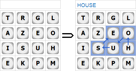 You can move from one letter (dice) to another if it is a neighbour (in all directions).